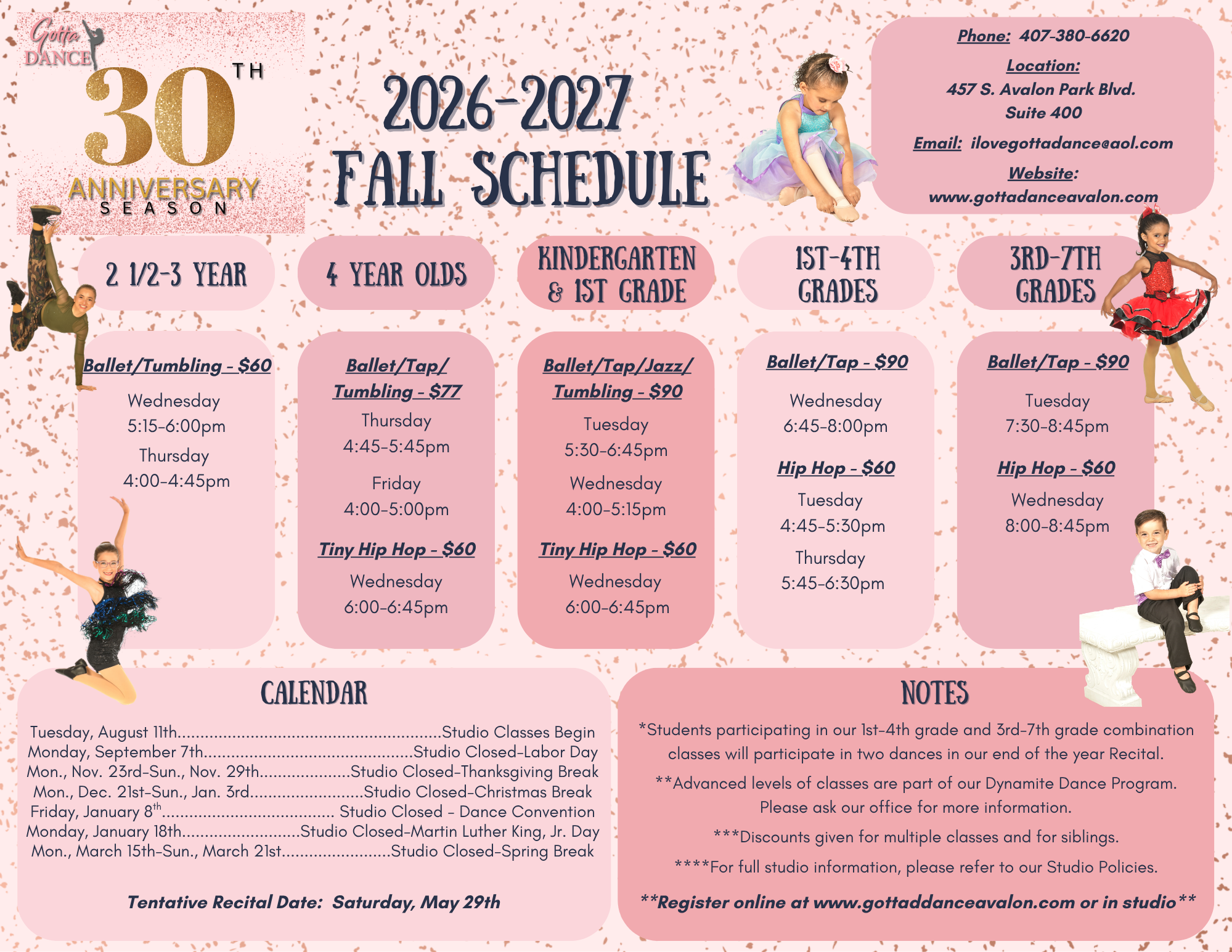 This is shaping up to be our BEST season yet, and we can’t wait for you to be part of it! Spots will fill quickly — check out the schedule and secure your dancer’s place today!